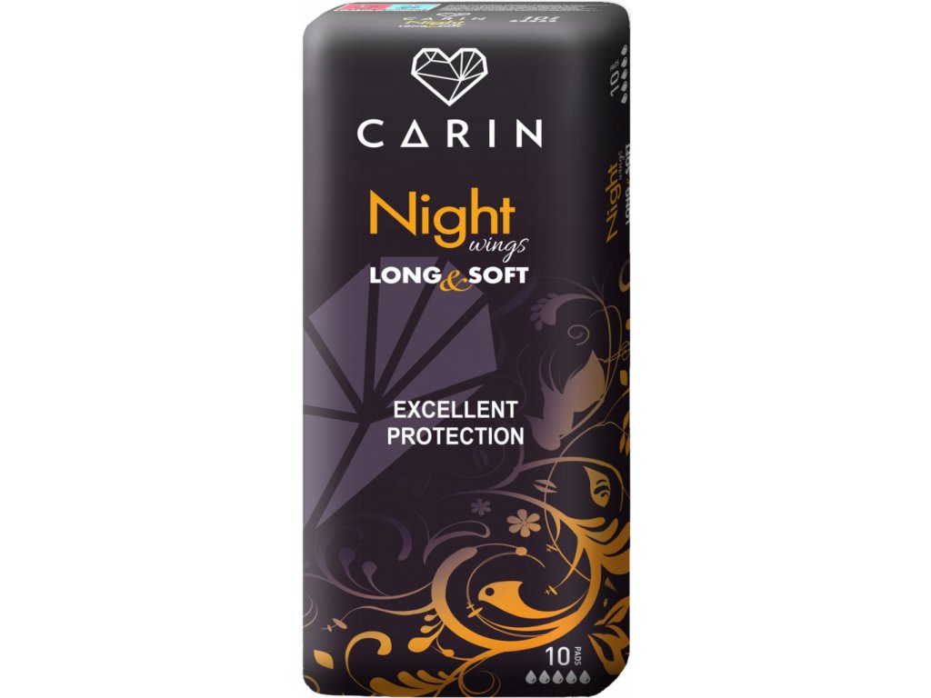 Les serviettes hygiéniques Carin Night Wings offrent encore plus de confort et une protection fiable. Ultra-fines et emballées individuellement, elles sont dotées d'ailettes pour une sensation de propreté et de fraîcheur grâce à une technologie spéciale. Les serviettes hygiéniques Carin sont principalement conçues pour une utilisation nocturne.