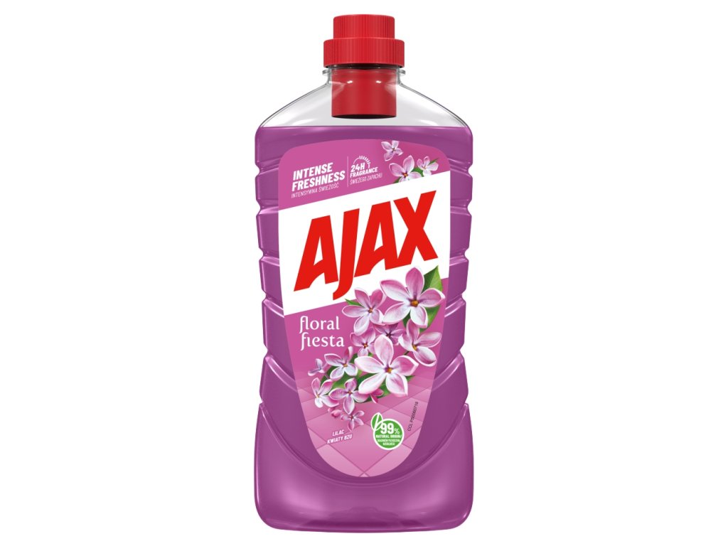Ajax Floral Fiesta Brise Lilas est un nettoyant multi-surfaces au parfum unique qui se libère dans l'air. Enrichi en extraits de fleurs naturelles et en huiles essentielles, il diffuse progressivement un arôme floral printanier qui rafraîchit votre intérieur d'une fraîcheur naturelle pendant plus de 24 heures. Ajax nettoie en profondeur et laisse les surfaces impeccables, tout en protégeant les surfaces délicates (marbre, céramique). Il s'utilise sans rinçage ni frottement.