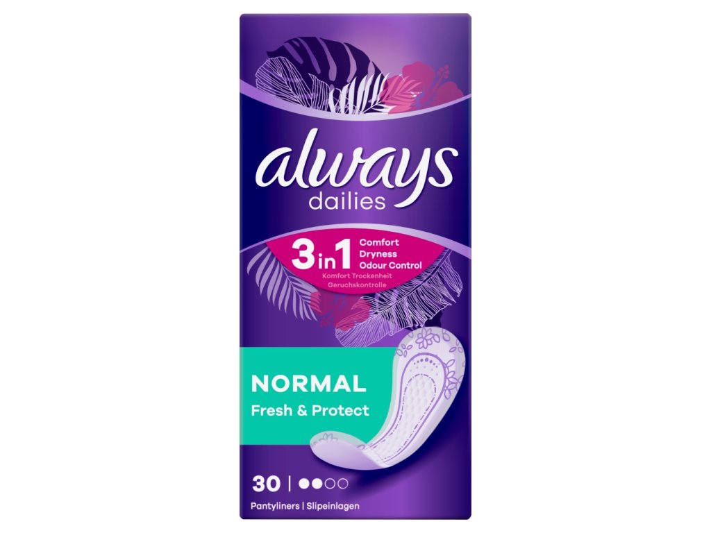 Restez fraîche toute la journée avec les sous-vêtements Always Fresh & Protect Normal. Confortables et protecteurs, ils vous offrent une protection optimale au quotidien, pour une sensation de légèreté absolue. Idéaux en cas de pertes vaginales ou pour une protection renforcée lors de règles irrégulières.