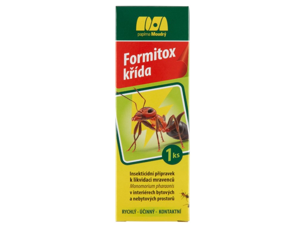 La craie anti-fourmis Formitox est un insecticide de contact à action rapide et efficace, sous forme de craie blanche , destiné à éliminer les fourmis de l'espèce Monomorium pharaonis (fourmis pharaons) à l'intérieur des bâtiments résidentiels et commerciaux . Son action dure environ 30 minutes après application.