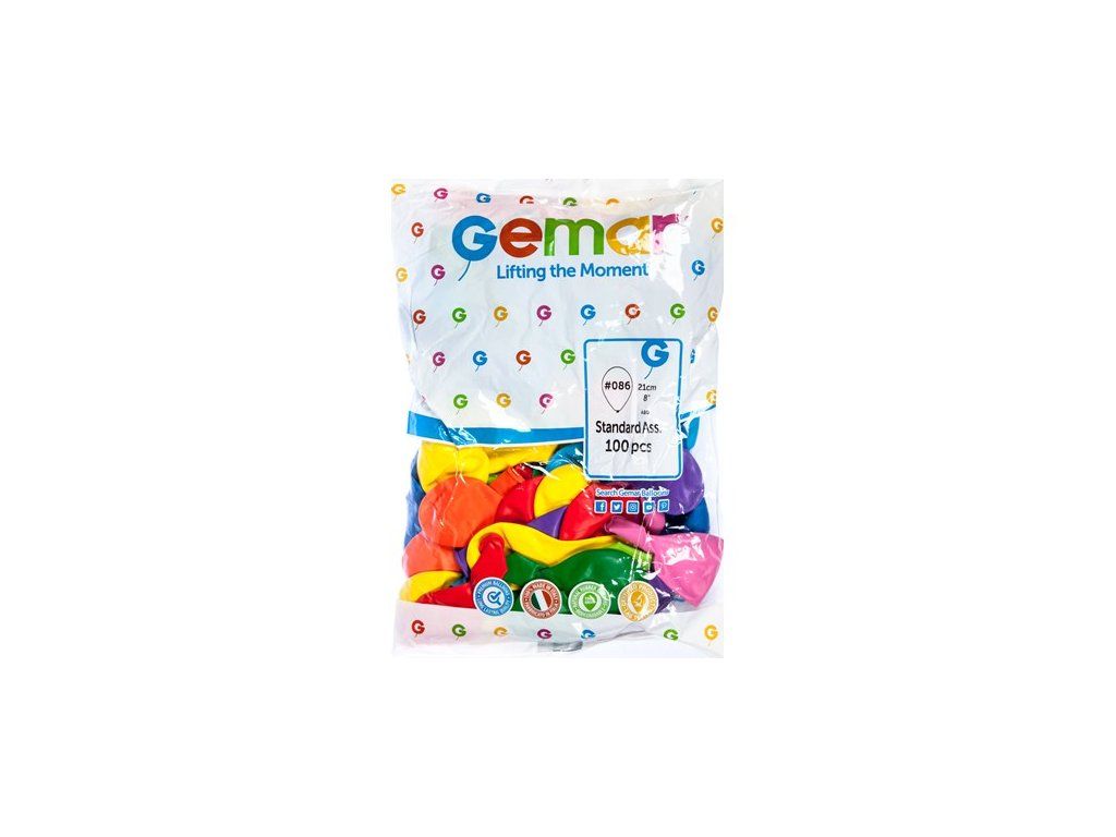 Ballons gonflables GEMAR 21 cm, couleurs assorties, lot de 100.