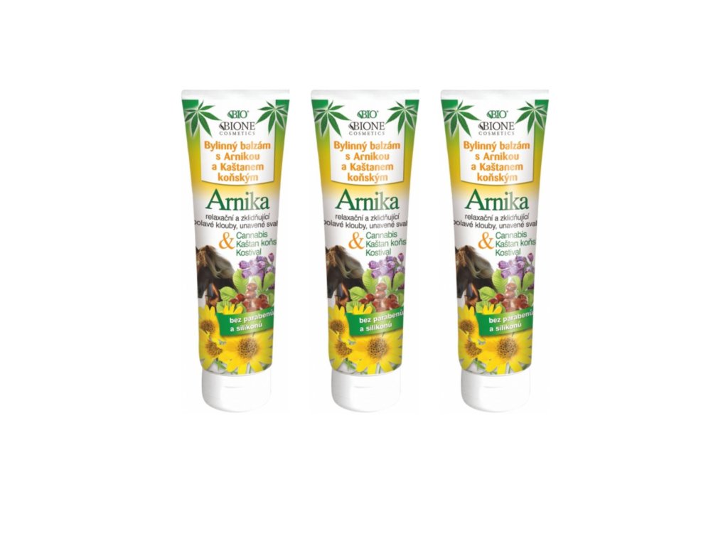 Baume aux herbes Bione Cosmetics à l'arnica et au marron d'Inde, 3 x 300 ml