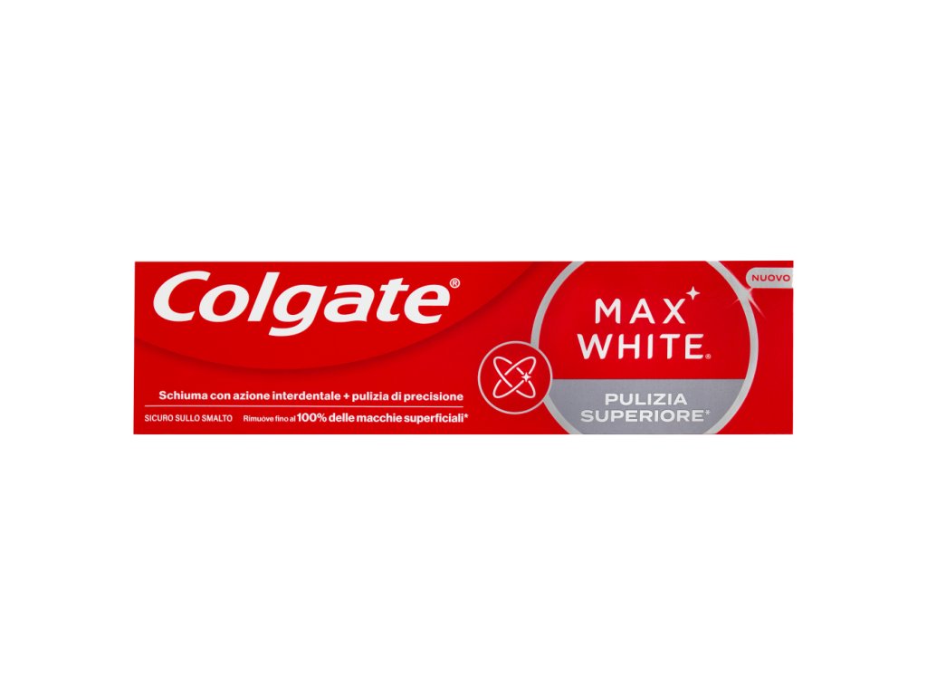 Le dentifrice Colgate Max White Superior Clean agit durablement : avec un brossage régulier deux fois par jour, les taches sont éliminées de la surface de vos dents et votre sourire est plus éclatant . Tout en respectant l'émail, il garantit que le blanchiment n'entraînera pas de sensibilité accrue.