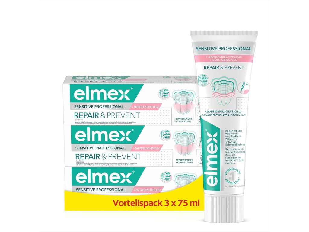 Caractéristiques principales du dentifrice ELMEX Sensitive Professional Repair & Prevent