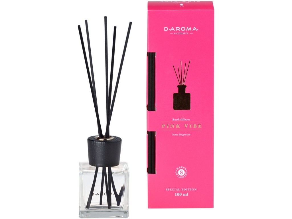 L'élégant diffuseur de parfum exclusif D-Aroma, au parfum Pink Vibe, deviendra un élément de décoration incontournable de votre intérieur. Laissez-vous envelopper de bonheur par cette douce fragrance aux vibrations positives qui embaumera délicatement votre maison. Le parfum se diffuse dès l'insertion des bâtonnets dans le diffuseur. Ajustez l'intensité du parfum en fonction du nombre de bâtonnets. Ce diffuseur est également une excellente idée cadeau pour vos proches. Contenance : 100 ml. Durée de diffusion : jusqu'à 6 semaines.Paramètres supplémentaires