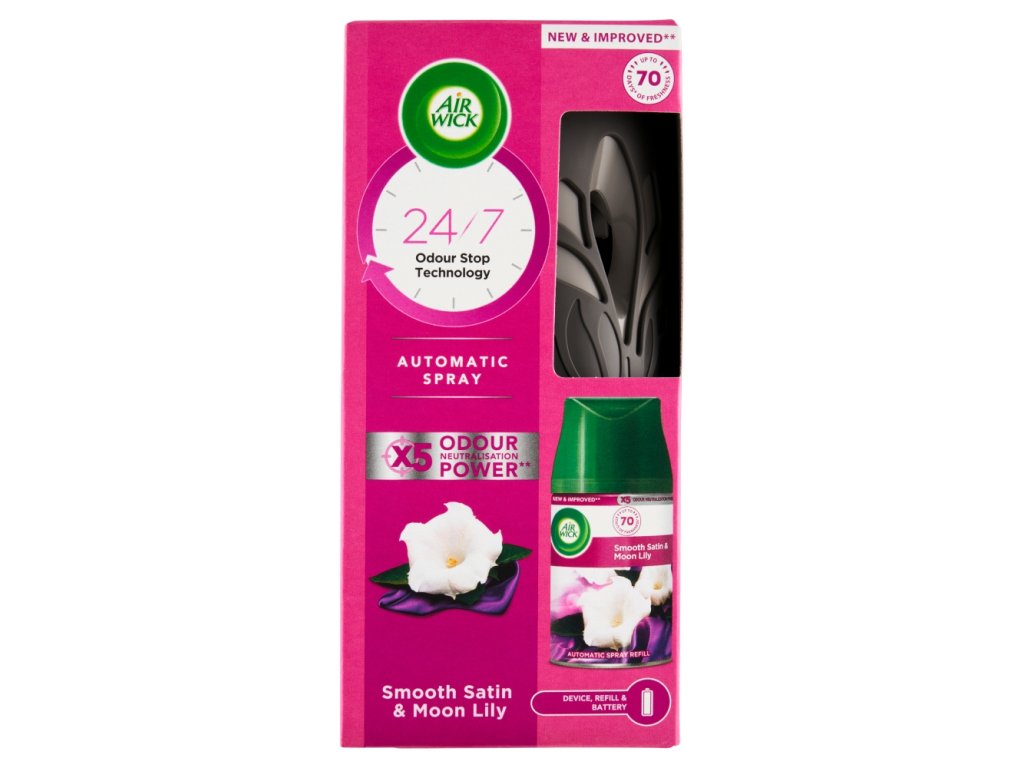 Distributeur Air Wick Freshmatic + recharge 250 ml, parfum satin fin et lys
