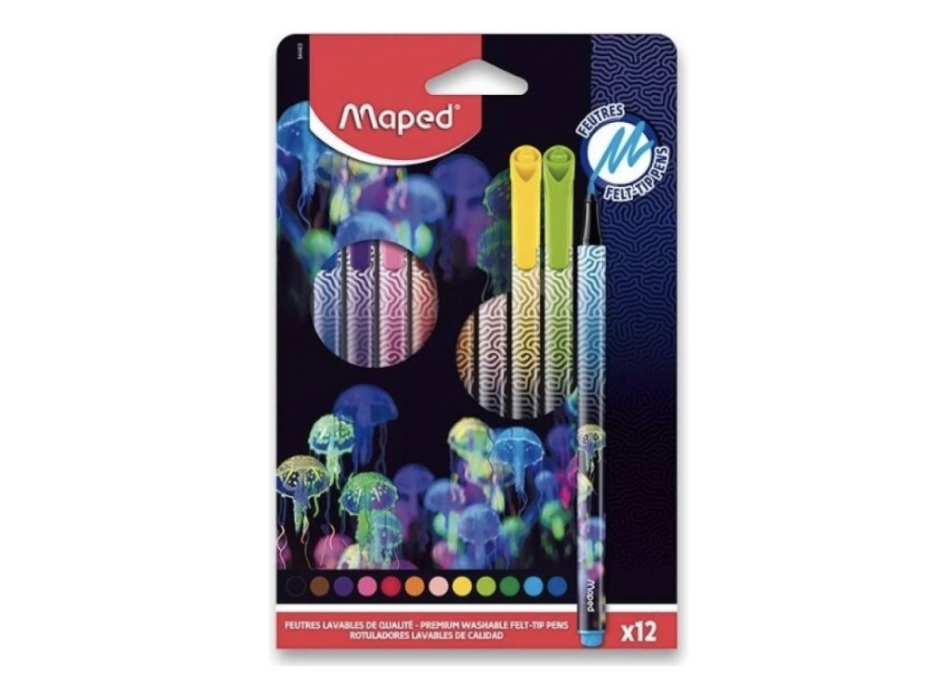 Lot de 12 marqueurs de couleur Maped Deepsea Paradise avec encre facilement lavable.