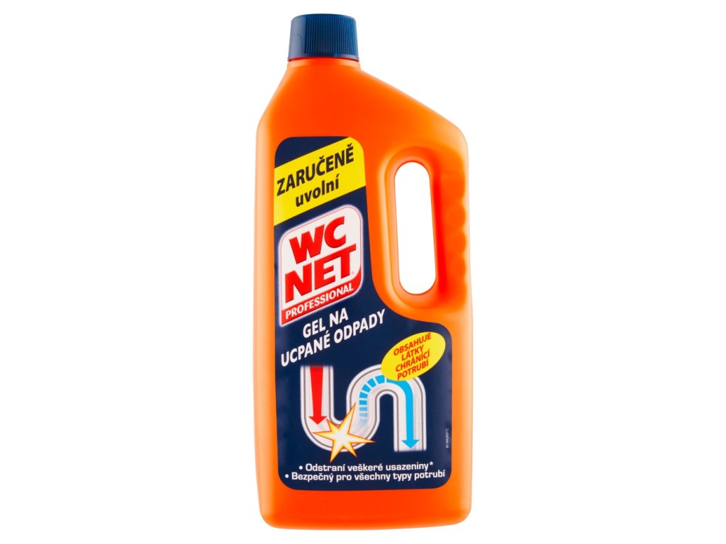 WC Net Professional , grâce à sa formule gel épaisse, pénètre même dans l'eau stagnante et dissout tous les résidus qui obstruent les canalisations, les débouchant ainsi. Il contient des substances qui aident à protéger les canalisations et à prévenir les dommages causés par le calcaire. Il dissout : fruits, légumes, marc de café, cendres, poussière, crème, huile, graisse, produits nettoyants, saletés de l'évier et cheveux, sébum, crèmes, déodorants solides, agents durcisseurs de mousse, dentifrices, gels à raser (douche et lavabo).