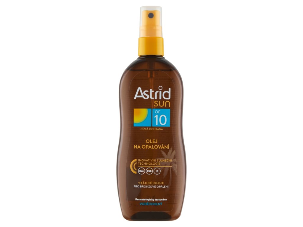 L'huile en spray solaire ASTRID SUN OF 6, dotée d'une technologie solaire innovante ( UVA/UVB/IR ), offre à la peau une protection photostable à large spectre contre les effets nocifs des rayonnements UV et infrarouges .