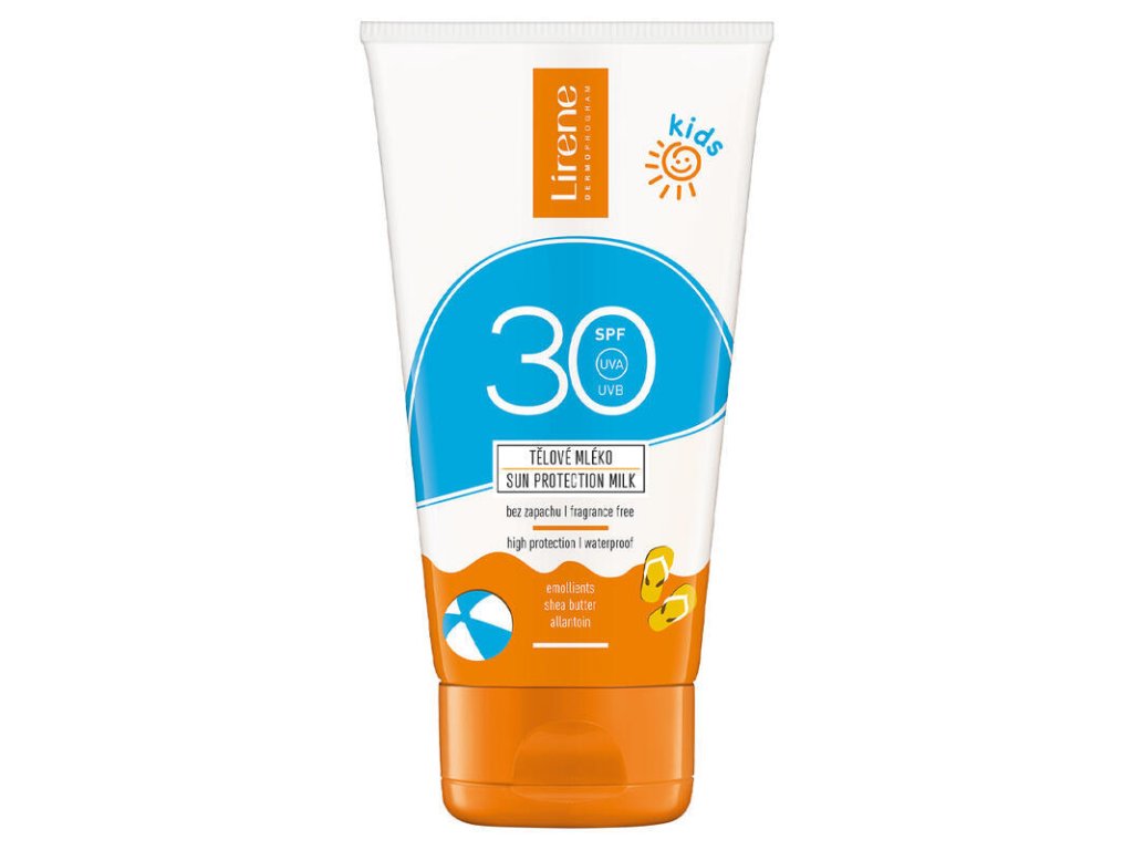 Lait corporel Lirene SUN KIDS SPF 30 : résistant à l'eau, sans parfum et offrant une haute protection solaire. Ses filtres photostables UVA et UVB protègent efficacement la peau des coups de soleil. Convient aux enfants dès 7 mois. Sa formule enrichie en agents émollients hydrate et nourrit la peau délicate des enfants, prévenant ainsi son dessèchement. Contient du beurre de karité et de l'allantoïne. Utilisation : Appliquer une quantité suffisante de lait sur la peau, de préférence 15 minutes avant l'exposition au soleil. Pour une protection optimale, renouveler l'application toutes les deux heures et après s'être essuyé(e), avoir nagé ou transpiré.Paramètres supplémentaires