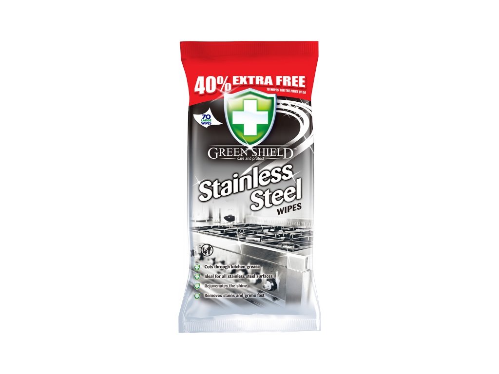 Lingettes humides Green Shield pour acier inoxydable, lot de 70.