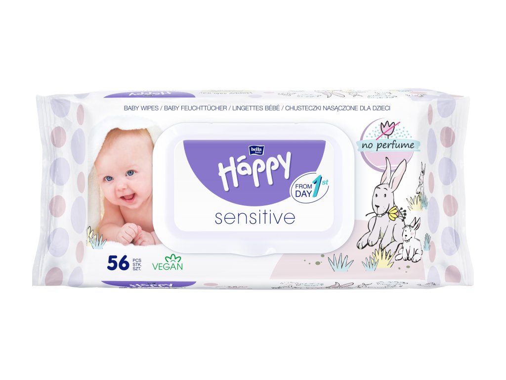 Lingettes nettoyantes HAPPY Baby - Sensitive - 56 pièces.