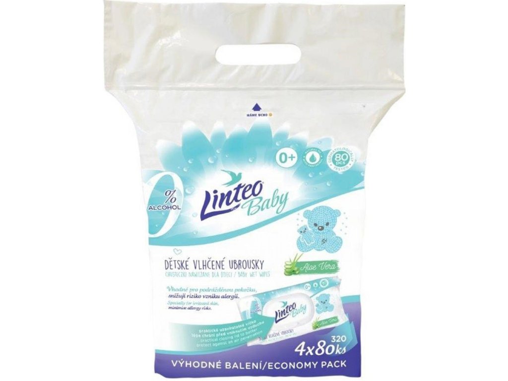 Lingettes pour bébé Linteo Baby, paquet de 4 x 80 unités
