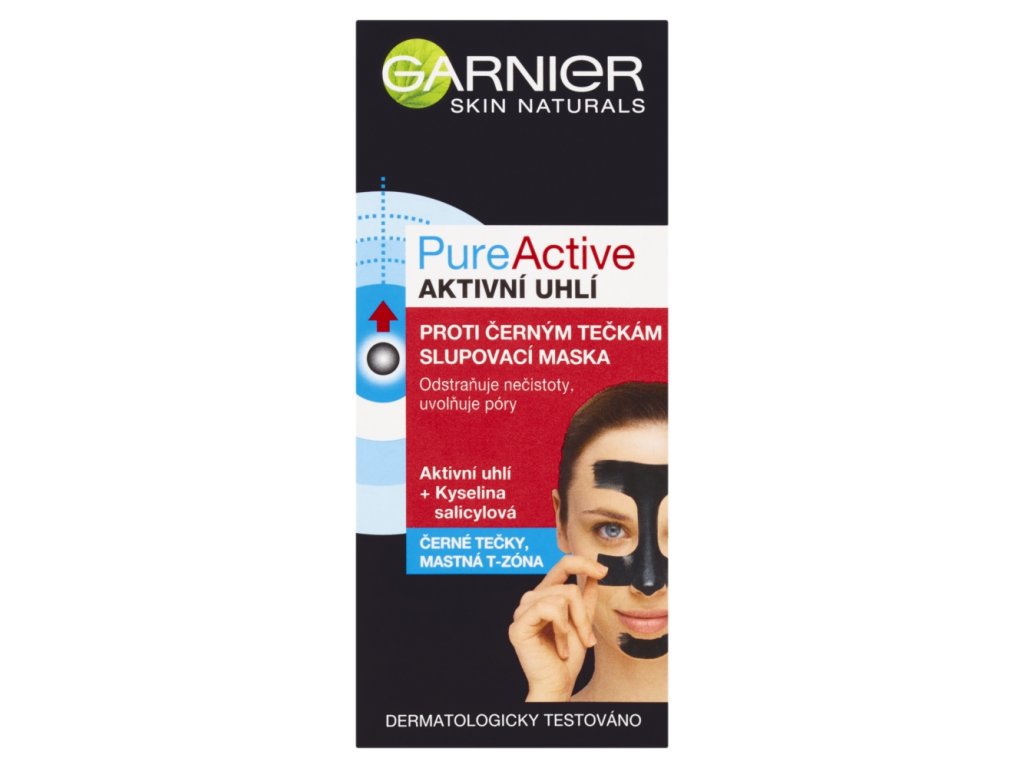 Le masque noir peel-off au charbon Garnier PureActive contient du charbon naturel et de l'acide salicylique purifiant. Sa formule cible les points noirs causés par les impuretés telles que la poussière et le sébum, et les élimine efficacement de la zone T (nez, front et menton).