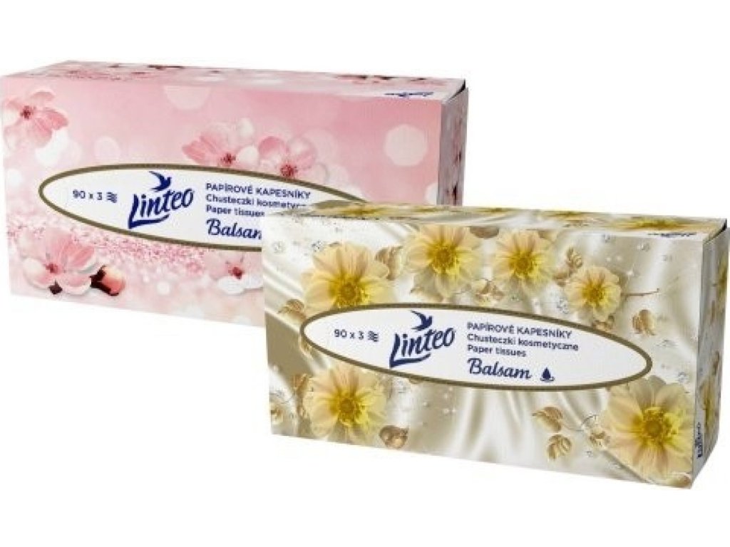 Mouchoirs en papier Linteo avec baume, boîte de 90 mouchoirs 3 plis