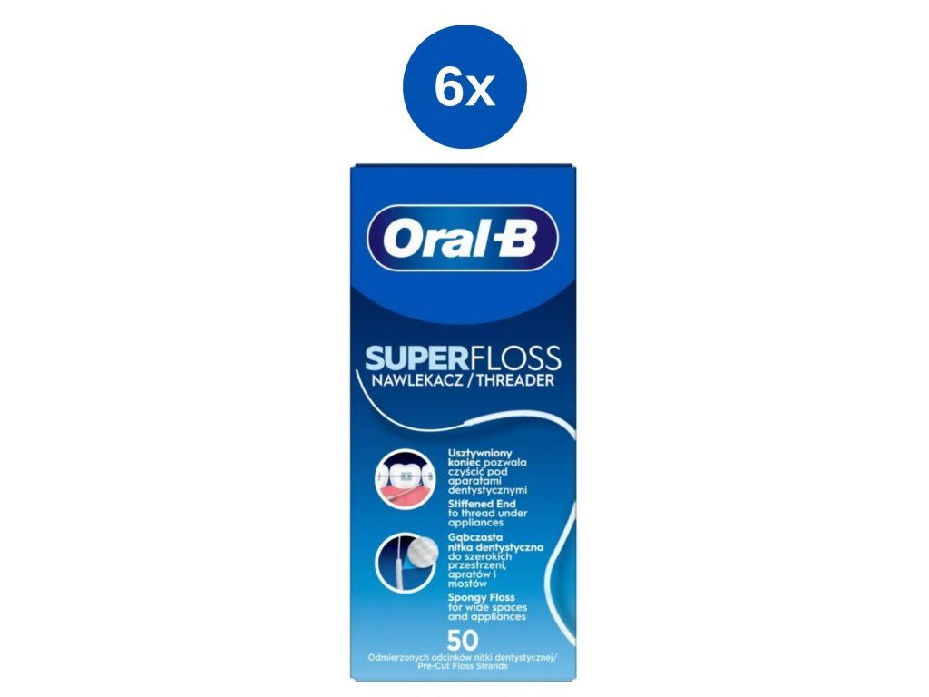 Le fil dentaire Oral-B Super est un fil dentaire spécial conçu pour un nettoyage en profondeur, même des zones difficiles d'accès de la cavité buccale, notamment lors du port d'appareils orthodontiques, de bridges ou d'implants.