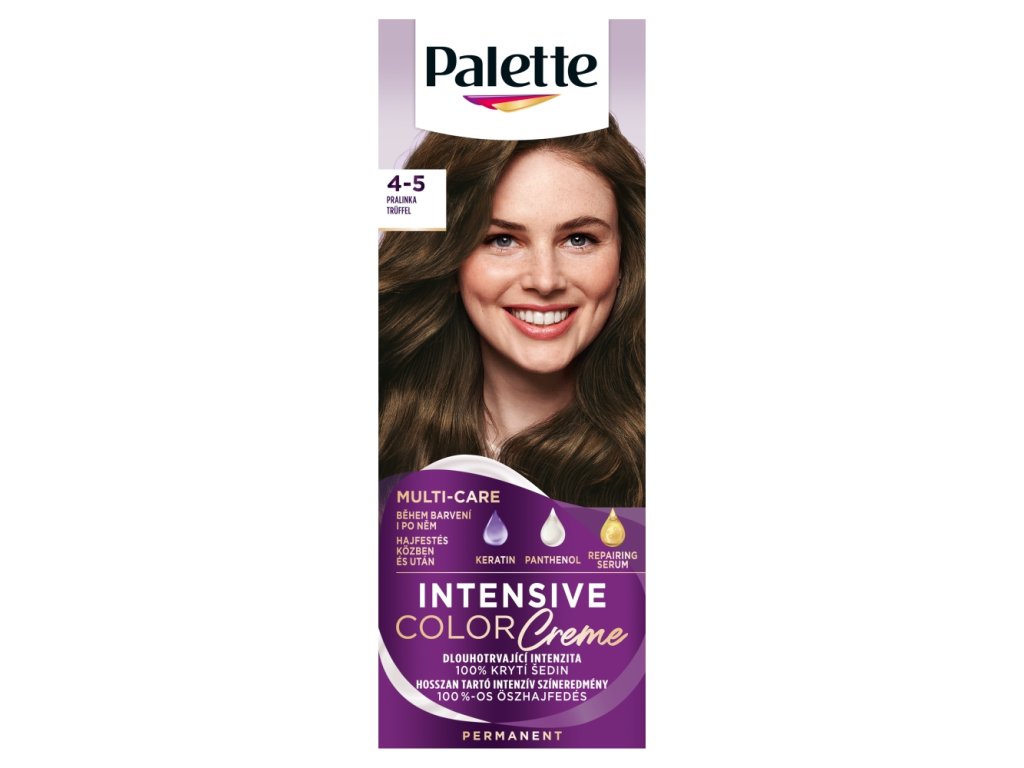 Essayez la NOUVELLE Crème Colorante Intensive Palette enrichie en kératine. Votre couleur préférée vous offre désormais une couleur intense et durable, ainsi qu'une brillance éclatante. Découvrez la Crème Colorante Intensive Palette enrichie en kératine pour : une couleur intense longue durée, une brillance maximale, des cheveux sains et forts grâce à un soin adapté, une couverture jusqu'à 100 % des cheveux blancs et une protection contre le décoloration.