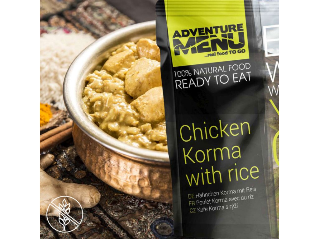 Avant tout, ce plat vous donnera l'énergie nécessaire pour démarrer votre aventure. Grâce à lui, vos repas de camping prendront une toute nouvelle dimension, et vous n'aurez plus besoin de vous contenter de fast-food. Le poulet korma au riz est très facile et rapide à préparer en suivant les instructions. C'est pourquoi il est particulièrement apprécié au sommet des montagnes, avec une vue imprenable sur les paysages environnants. Mais vous l'apprécierez aussi lors des journées chargées à la maison, quand le temps vous manque pour cuisiner. En un instant, un excellent repas nutritif est prêt.
