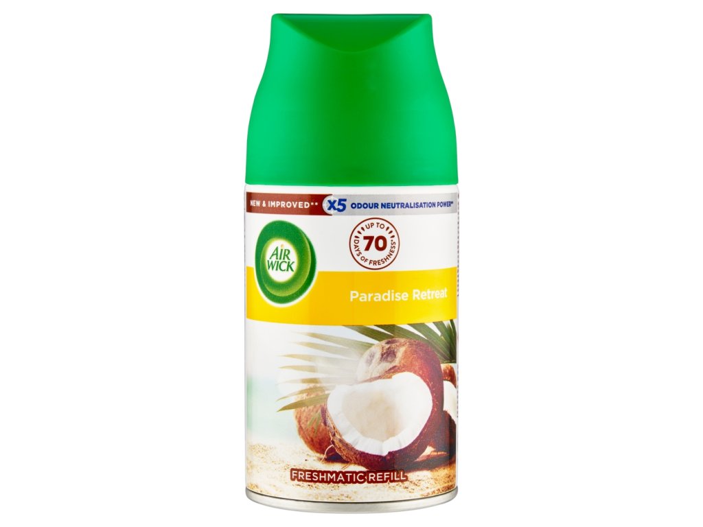 Offrez-vous un avant-goût de paradis avec le parfum de noix de coco fraîche, de fleur d'amandier et une touche de cerise. Sublimez l'atmosphère de votre intérieur avec le diffuseur automatique Air Wick Life Scents Freshmatic - Jardin d'Éden. Créez un havre de paix paradisiaque dans votre cocon grâce à ce parfum de noix de coco fraîche, de fleur d'amandier et une pointe de cerise.