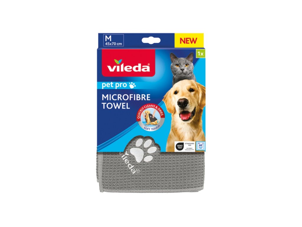 La nouvelle serviette de nettoyage Vileda Pet Pro – pour un nettoyage rapide et efficace et un séchage en douceur des pattes et du pelage de votre animal. Ainsi, vous évitez les dégâts dans la maison. 2. Fabriquée en microfibre.