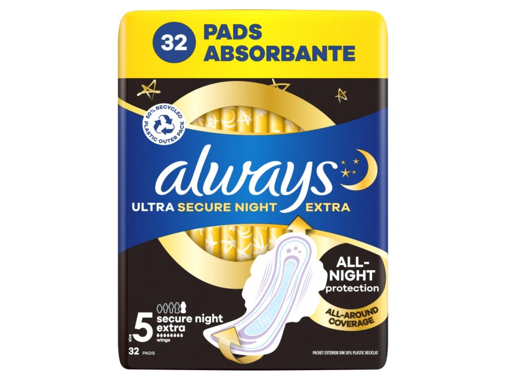 Serviettes hygiéniques Always Ultra Extra Secure Nuit, paquet de 32