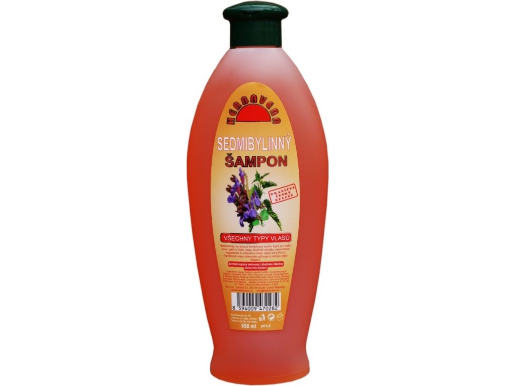 Le shampooing Herbavera aux sept herbes, enrichi en panthénol et combinant les bienfaits des extraits d'ortie , de calendula , de bouleau , de sauge , de prêle , de plantain et de camomille , convient à tous les types de cheveux.
