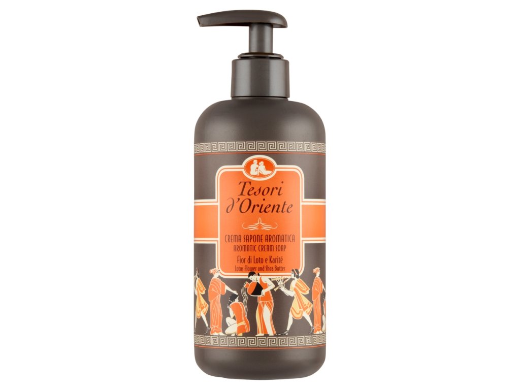 Savon crème pour les mains italien de la célèbre marque Tesori d'Oriente, présenté dans un élégant emballage design. Les savons crème Tesori se distinguent par leur composition harmonieuse de parfums qui laissent une agréable sensation de fraîcheur et hydratent la peau en profondeur. La marque Tesori propose désormais des gammes complètes comprenant un savon pour les mains, un gel douche et un adoucissant, le tout dans un même parfum.