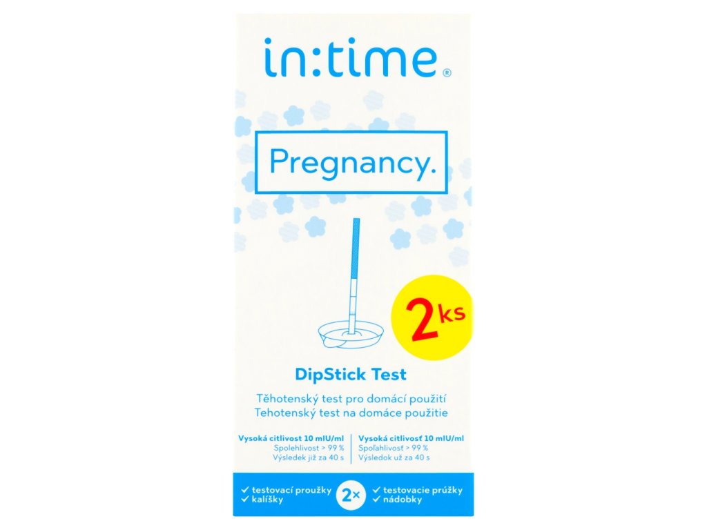 Le test de grossesse INTIME PREGNANCY HCG DIPSTICK est un test urinaire à usage domestique. Il permet de détecter une grossesse précoce grâce à la présence de l'hormone gonadotrophine chorionique humaine (hCG) dans l'urine. Cette hormone est produite par le corps pendant la grossesse. Un résultat positif est visible en seulement 40 secondes. La confirmation du résultat est obtenue en 5 minutes.